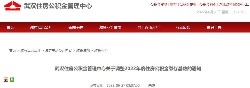 武漢住房公積金管理中心2022年6月24日